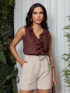 Blusa: - Confeccionada com babados na frente, decote com franzidos.
