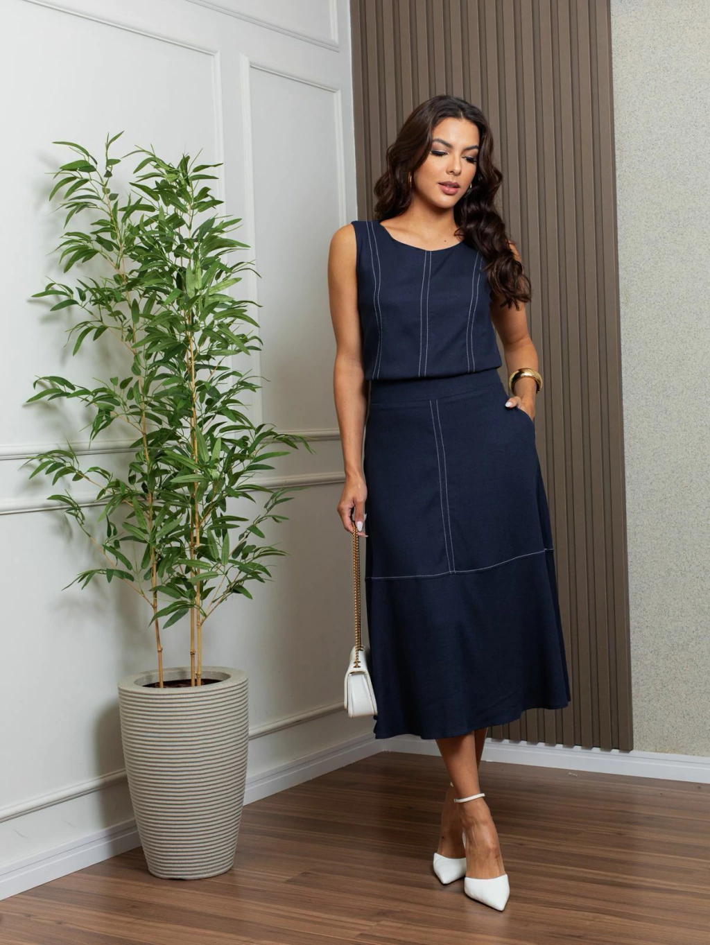 Descubra o Conjunto Feminino Blusa e Saia Pesponto ideal para qualquer ocasião! Este conjunto versátil é uma escolha perfeita para quem busca conforto e estilo.